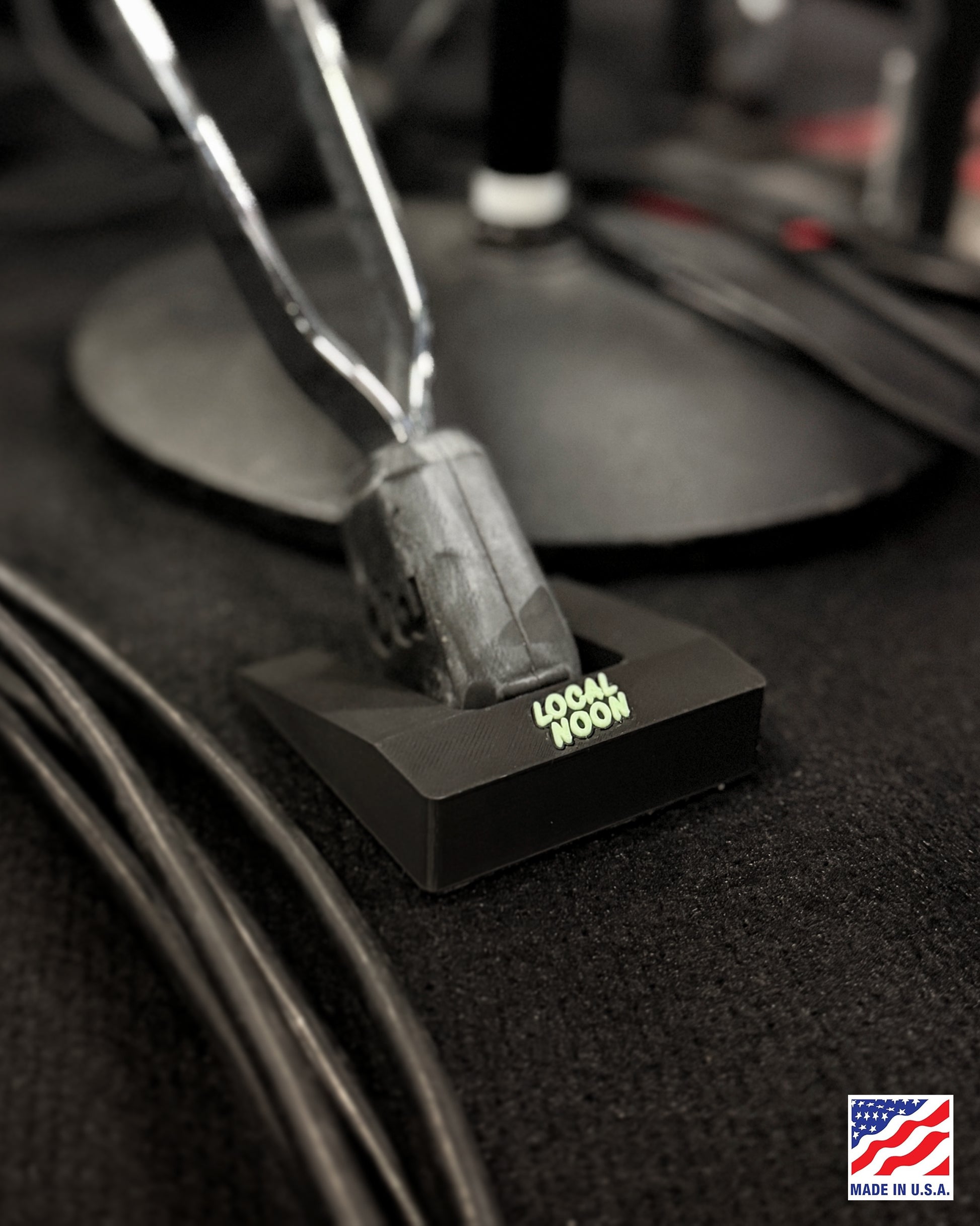 Keep your hardware from dancing away on stage. Velcro on bottom of shoe to secure to your drum rug or riser.